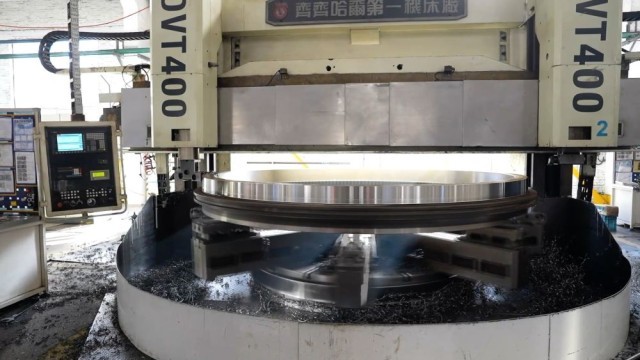 在洛轴集团风电轴承出产车间,一排排机床正有条有理地加工着一批风电偏航轴承。